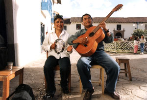 | Folk musicians playing in the Plaza of San Blas in Cuzco. | ![]() |