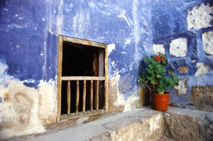 Monasterio Misterioso The Santa Catalina Convent Built in 1580. Only the nuns from the best Spanish families were accepted here. Traditionally, the second daughter of upper-class families entered a nunnery, supposedly to live in poverty and renounce the material world. However, each nun had between one and four servants or slaves (usually black), and had musical performances and parties. After three centuries of this, the pope complained that Santa Catalina was more like an exclusive club than a convent, and sent a strict Dominican nun to straighten things out. The nuns and servants who once lived here never ventured outside the convent. Accordingly, the place was shrouded in mystery for almost 400 years. It finally opened to the public in 1970. The remaining nuns continue to lead a cloistered life, but only in the northern corner of the complex. The rest is now open to the public, the tourism in part to pay for the upkeep of the convent. Aside from the wonderful Peruvian people, the convent of Santa Catalina was one of the major reasons that I returned to Peru. We were extremely impressed with the beauty and vivid colors of the convent, with the pastel walls beautifully contrasting with period furnishing, bright flowers, and religious art.