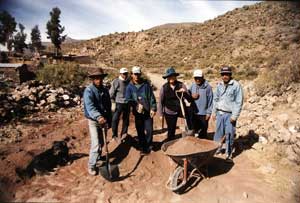 one other traveler. We met these laborers while hiking towards the Valle de las Volcanes. Simin is third from the right, illustrating that it is possible for tourists to obtain employment in Peru if one knows where to look. |