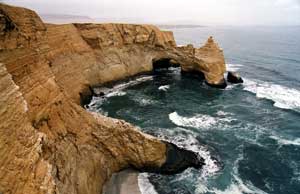 The peninsula of Paracas, a wildlife sanctuary along the Peruvian coast. This area is particularly known for its bird and marine life. The birds nest on teh offshore islands in such numbers that their nitrogen-rich droppings (guano) collect in quantities large enough to be commercially exploited for fertilizer. This practice dates from at least Incan times. A number of indentured Chinese servants and slaves were brought here to mine guano for shipment to Europe and elsewhere. |