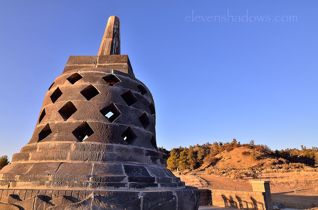 The stupa at Pine Mountain Buddhist Temple and Meditation Retreat. According to Reverend Phoebe, some use the stupa for meditation, and the stupa area lights are oriented toward north, south, east, and west. |