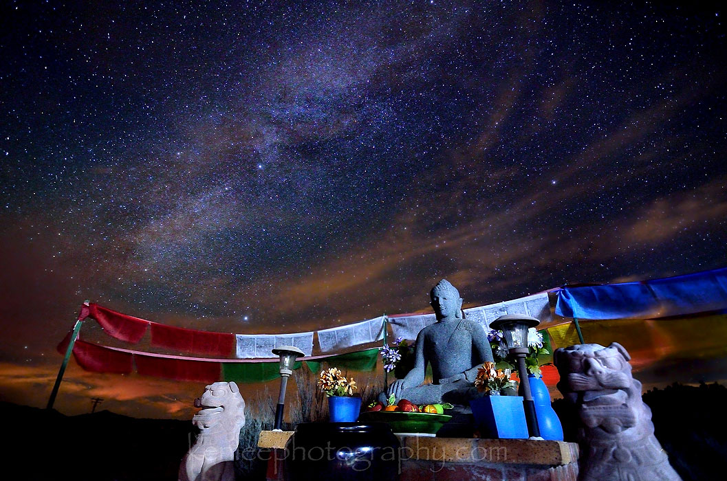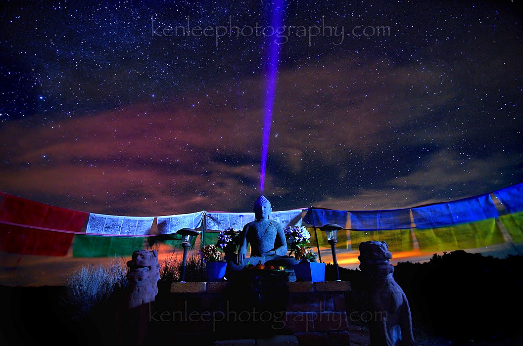 Title: Pine Mountain Cosmic BuddhaPhotographer: Ken Lee Photography Info: Nikon D7000, Tokina 11-16mm f/2.8. This is a long exposure night sky photo with a long exposure of 30 seconds, f/2.8, ISO 1000 taken 15 November 2013 at about 9:00 pm D.S.T. Light painted with a Streamlight LED flashlight and a 5mW blue laser pointer. Location: Pine Mountain Buddhist Temple and Meditation Retreat, Maricopa, CA. |