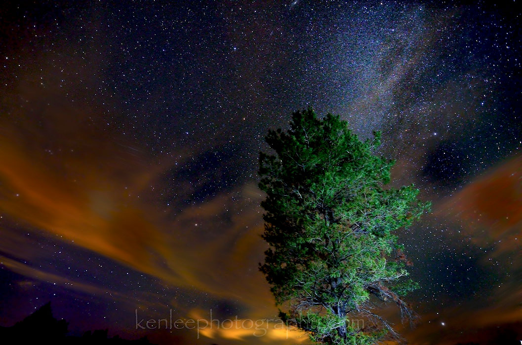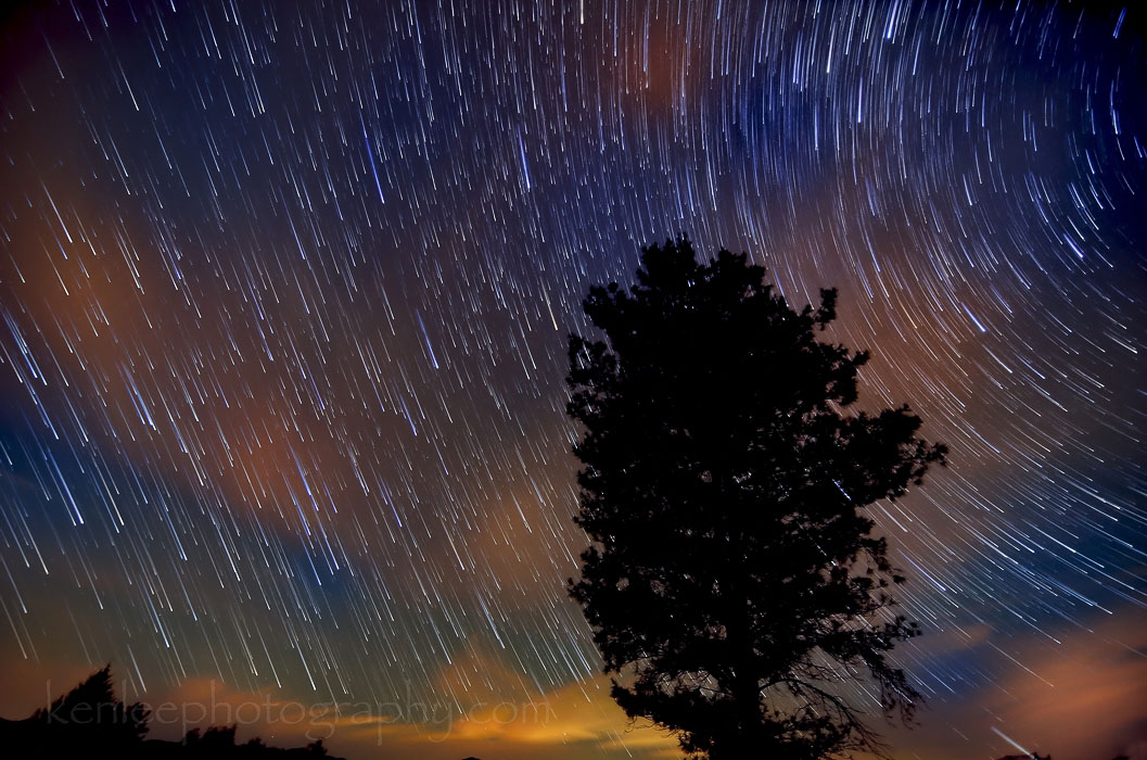 Title: Pine Mountain Star TrailsPhotographer: Ken Lee Info: Nikon D7000, Tokina 11-16mm f/2.8, Feisol tripod. This is a long exposure night sky photo of 23 and a half minutes in total, with each individual photo exposed for 30 seconds at f/2.8 ISO 800, stacked "by hand" in CS4. I did light paint the tall pine tree with a Streamlight LED flashlight but then decided it looked better without it and got rid of that frame. Photo begun probably about 8:40 pm D.S.T. on 23 November 2013. Location: Pine Mountain Buddhist Temple, Maricopa, Callifornia, USA |