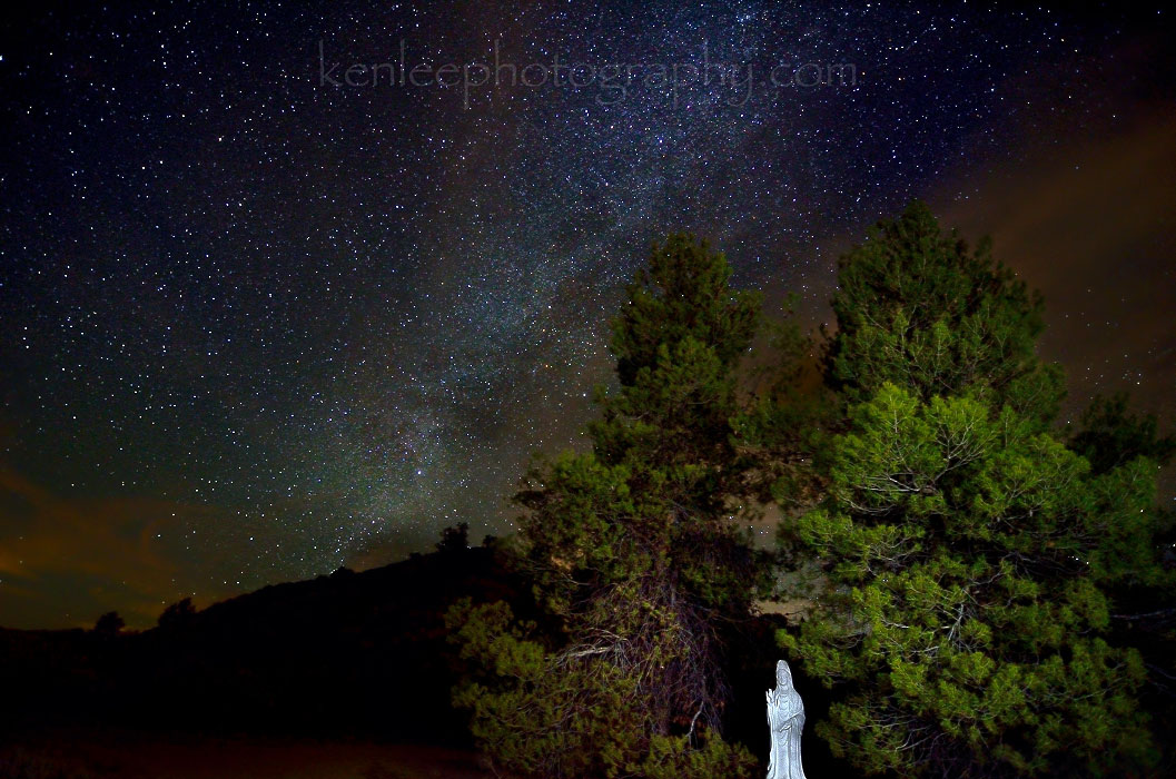 Milky Way over Pine Mountain Buddhist Temple and Meditation Retreat.Title: Pine Mountain Milky Way Photography: Ken Lee Info: Nikon D7000, Tokina 11-16mm f/2.8 lens. 20 second f/2.8 ISO 2500. Photo 9:52 pm D.S.T. 18 November 2013. Location: Pine Tree Buddhist Temple and Meditation Center, Maricopa, CA, USA, |