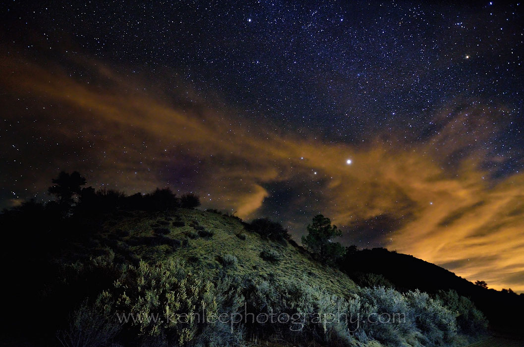 The night sky at Pine Mountain Buddhist Temple and Meditation Retreat.Title: Rizo Trail Sky Photography: Ken Lee Info: Nikon D7000, Tokina 11-16mm f/2.8 lens. 20 second f/2.8 ISO 2000. Photo about 10:02 pm D.S.T. 18 November 2013. Location: Pine Tree Buddhist Temple and Meditation Center, Maricopa, CA, USA. |