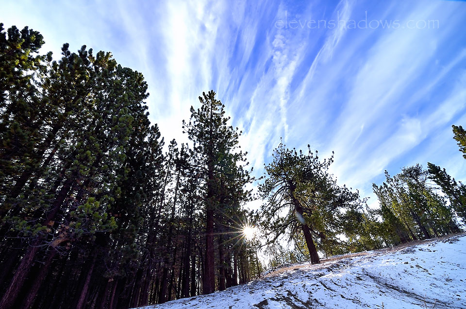 I went on a short hike through the snowy trail at the top of the mountain, stopping every so often to admire the amazing trees. |
