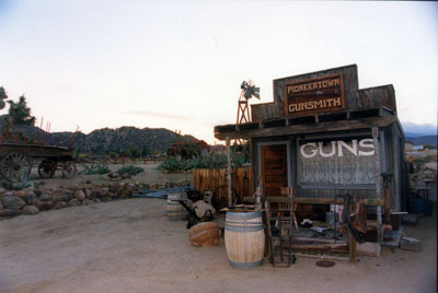 Pioneertown, located a few miles outside Yucca Valley near Joshua Tree National Park, was originally built as a movie set for Western movies. The movie set was to provide a place for the actors to live, and have their homes used as part of a movie set. November 2004. |