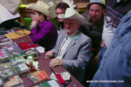 Ralph Stanley and everyone else meeting enthusiastic fans at the record table at Pappy and Harriet's in Pioneertown.