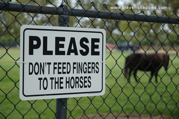 see these photos.And although the sign warns, "don't feed fingers to the horses", it's primarily up here for children and anyone lacking common sense. The horses are gentle. |