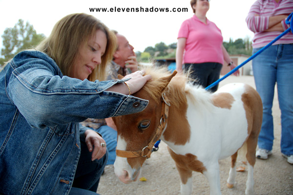 Valley.She told us that these miniature horses, depending on a variety of things, may cost between $3000-$15,000. She said they're gentle, wonderful with kids, don't chew furniture, don't leap up on people, are fun to take on walks, can live in the back yard, curl up next to you while you're watching TV, and can pull ten times their weight. I really would like to walk around my neighborhood with a miniature horse. What a great conversation starter! |