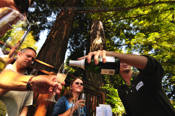 Champagne tasting underneath the redwoods near the Russian River at the Korbel Winery. |