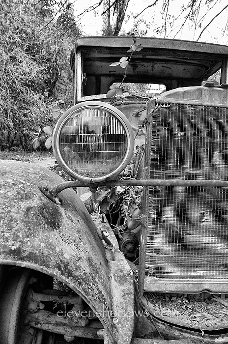 The trip started out poorly. My car had problems, so we rented a car. No, the car to the left is not our rental. Then, I lost my wallet. Lisa found this two and a half hours later under the seat of her truck. We left four hours later than planned. ~~ I tried to track down what kind of car this is, but could not. This was taken near Forestville very late at night. Title: People can have the Model T in any color – so long as it’s black |