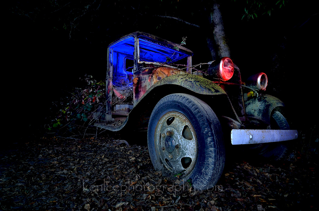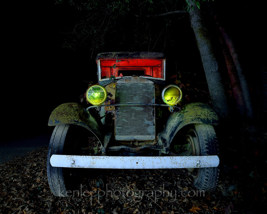 On the way back from Armstrong Redwoods, I saw this amazing car parked off the side of the road. I vowed to circle back later and take some night photos of it, light painting it for good measure. |