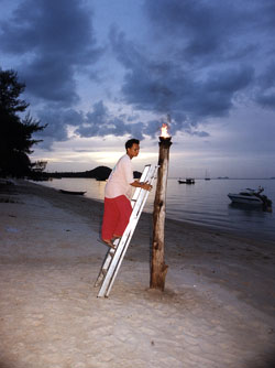 classes, massages, and a very quiet, isolated cove. The Sanctuary, like many places on the island of Ko Phangan, runs a generator for its electricity. |