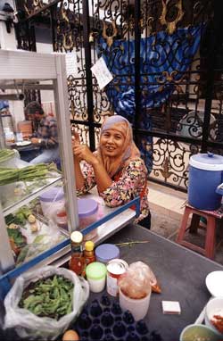 Bangkok has thriving markets and food stalls nearly everywhere, such as this one just off Silom Road.