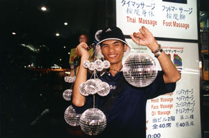 | Disco ball vendor selling his wares, Patpong district, Bangkok. | ![]() |