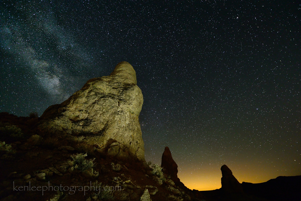 I took some photos of the Milky Way over Trona Pinnacles in the Mojave Desert in the hot summer. The skies are extra dark here, and one can see the Milky Way readily. I illuminated the tufa pinnacles at Trona with a hand-held flashlight during the exposure. |