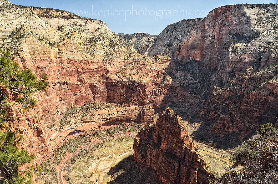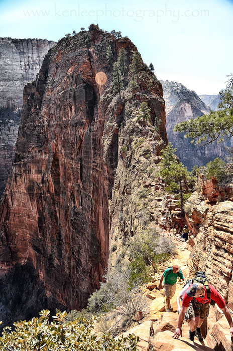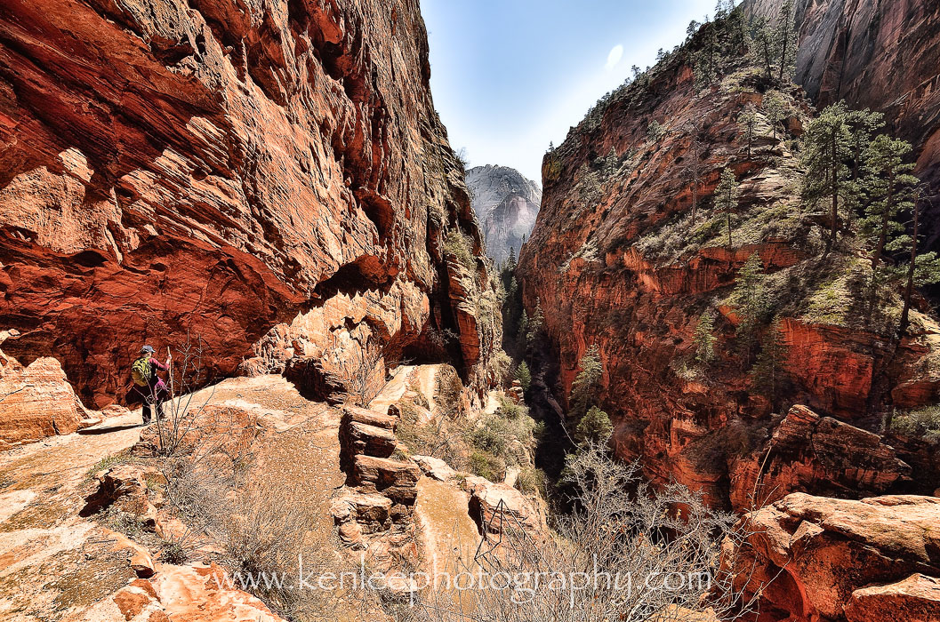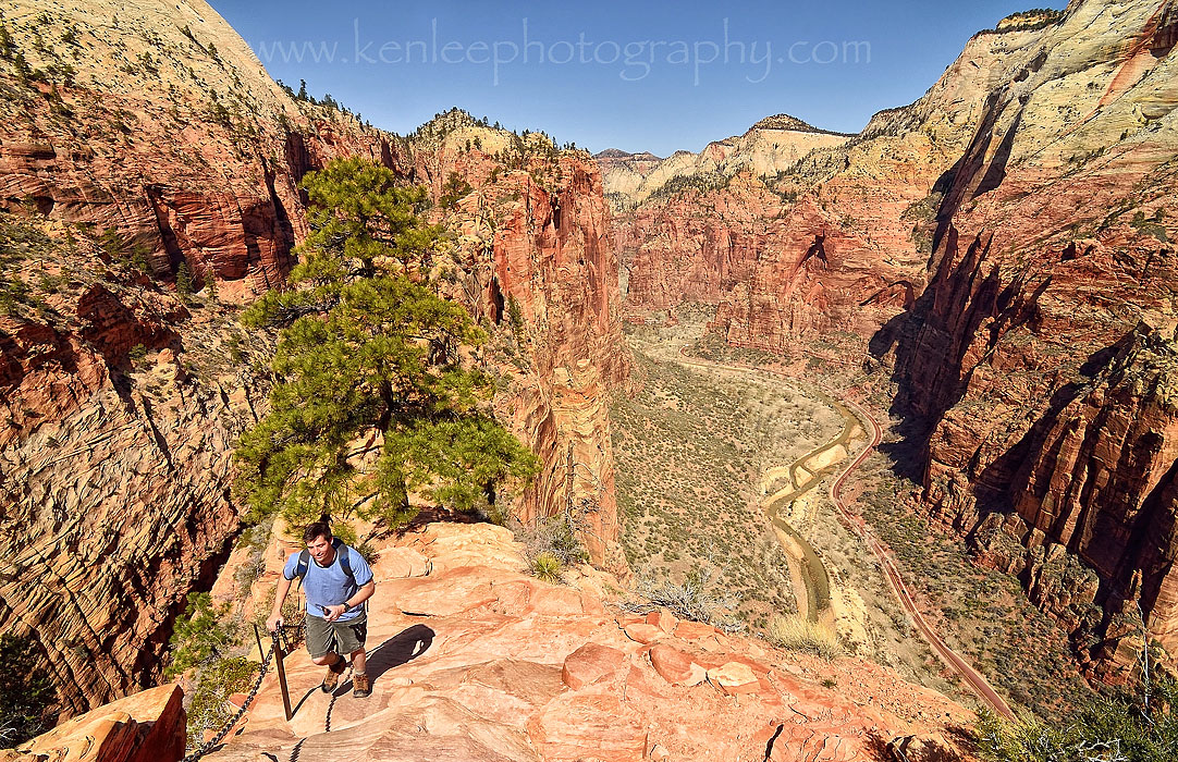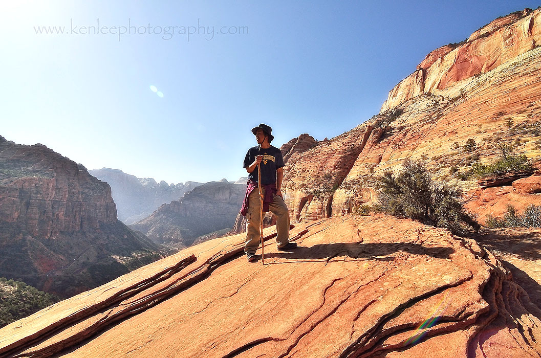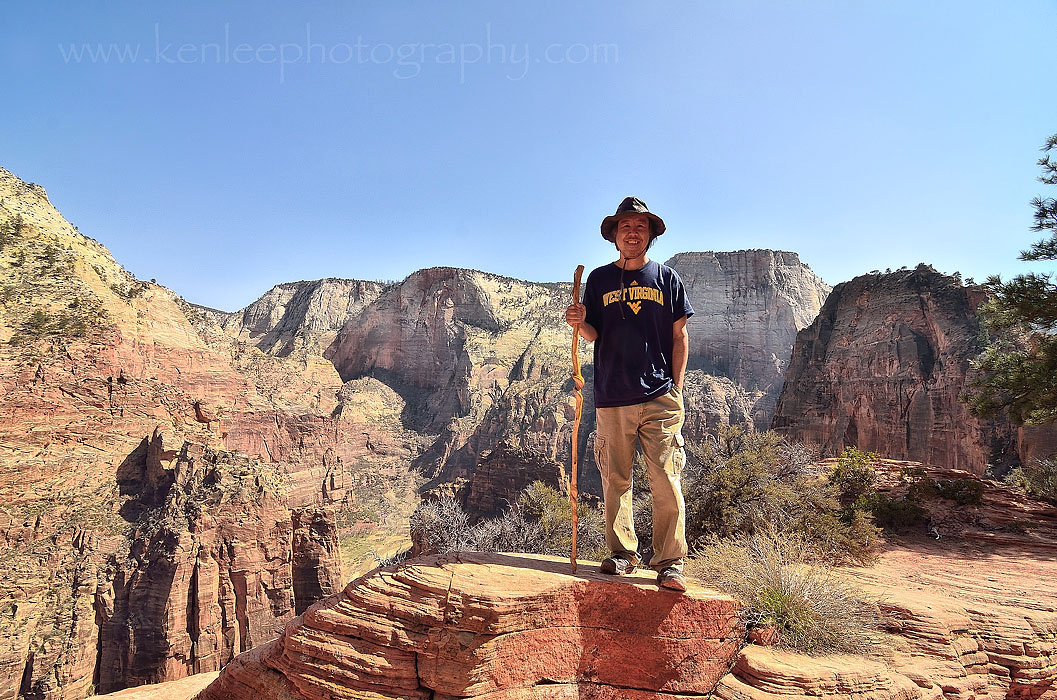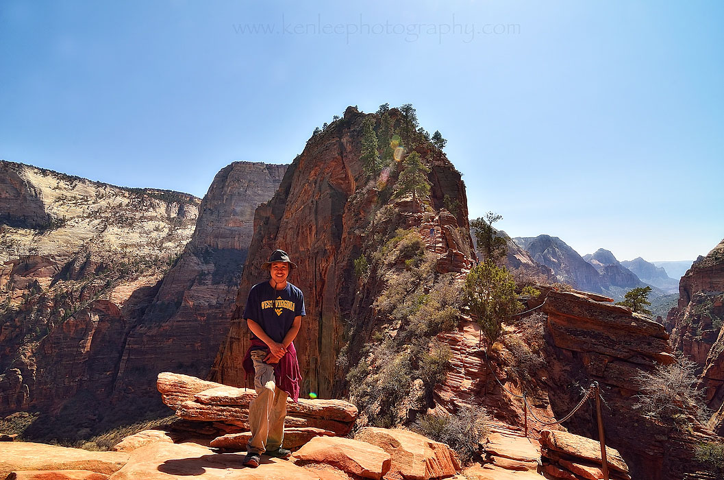 I kept receiving offers from people to take my photo, so I took someone up on that. Angels Landing is in the distance, with much of Zion Canyon spread out below. Although some say that Observation Trail is more spectacular, it was difficult to imagine anything being more beautiful than this hike. |