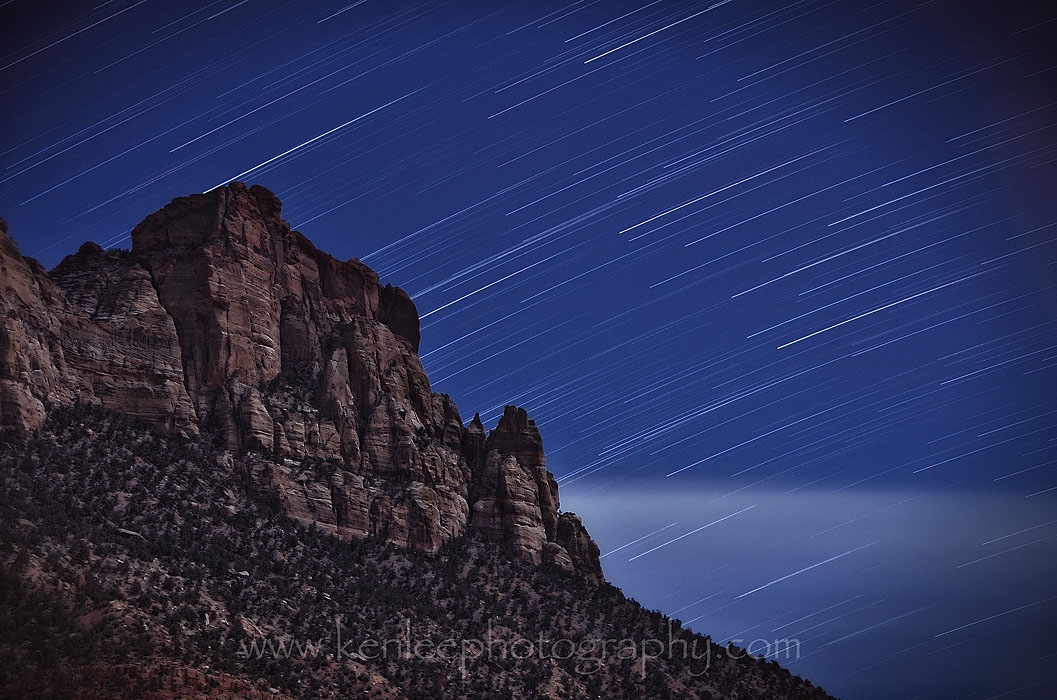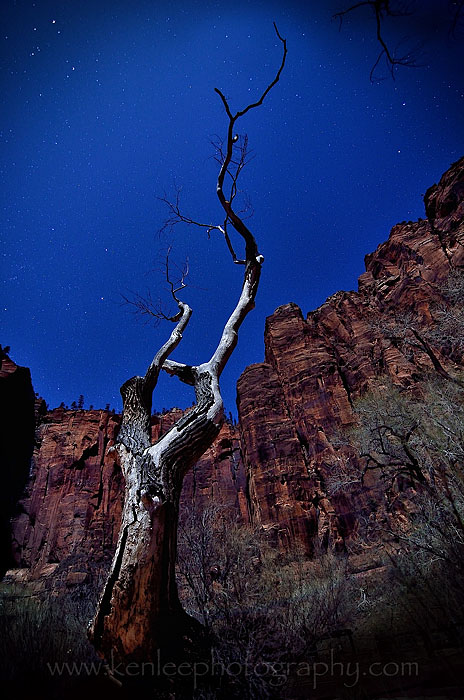 Two hikes in one day, Angels Landing and Canyon Overlook Trail were enough. We headed back down to Springdale and ate. But very quickly afterward, I headed back up with George. We had rock formations to light paint. We had night skies to photograph. We had the magnificent celestial movements to capture. |