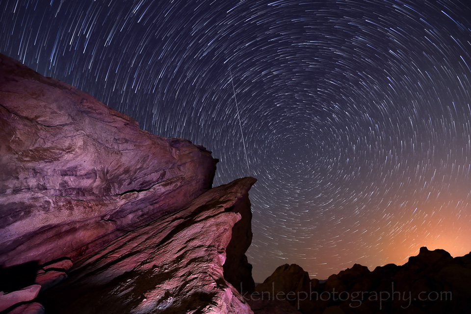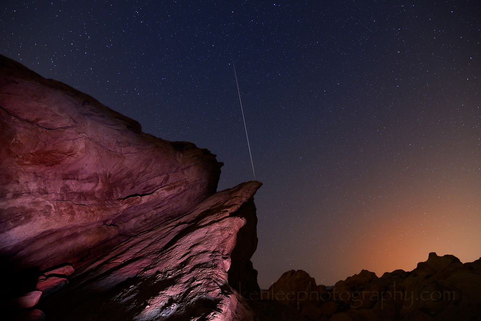 I bought a new camera and lens. I wanted to test it out, so I drove up to Vasquez Rocks, about 35 minutes from my house, and experimented with higher ISOs than I usually use. I got lucky and photographed a Lyrid meteor. I saw the meteor as it fell. It was magical.Title: Easter Meteor Info: Nikon D610, Tokina 16-28mm f/2.8 lens, my Dad's heavy 1970s Sears aluminum tripod. Exposure time 30 seconds at f/2.8, ISO 1000. "Light painted" with an Energizer headlamp. Lyrid meteor. 19 April 2014 midnight. Photographer: Ken Lee Photography Location: Vasquez Rocks, California, USA ~~~~ He comprado una nueva cámara y la lente. Yo quería probarlo, así que me condujo hasta Vasquez Rocks, a unos 35 minutos de mi casa, y experimenté con un ISO más alto de lo que normalmente utilizo. Tuve suerte y fotografié un meteoro Líridas. Vi el meteoro en su caída. Fue mágico. Título: Meteor Pascua Info: Nikon D610, Tokina 16-28mm f/2.8, pesado 1970 Sears trípode de aluminio de mi papá. 30 exposición f/2.8, ISO 1000. Pintura de luz con Energizer headlamp. Lluvia de meteoros Líridas. 19 abril 2014 de la medianoche. Fotógrafo: Ken Lee Photography Ubicación: Vasquez Rocks, California, EE.UU. |