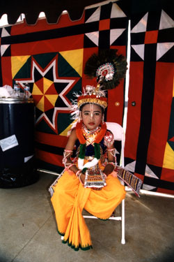 Pint-sized performer backstage at Festival of Chariots, Venice CA