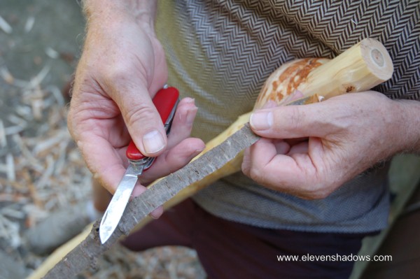 Paul, Lisa's father, carves walking sticks from various kinds of wood that he finds while hiking in the woods in back of the house. |