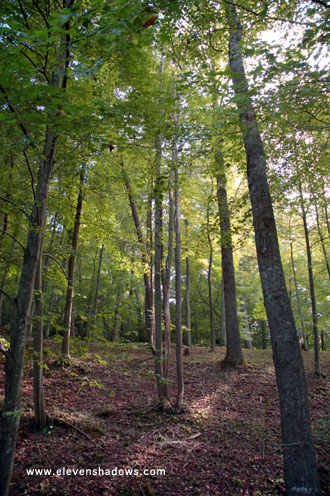 One the 2001 trip to West Virginia, I fell in love with the woods in back of Lisa's parents' house - also the house where Lisa grew up. I took pictures of the forest, only to mistakenly put the roll of film in with a load of wash. The pictures came out interesting, but just the same, I thought I would take some more. Since I am taking these pictures with a digital camera, putting them through the wash would likely have very different results on the photo. These are also the woods in back of Lisa's parents' home in Charleston, West Virginia. Paul, Lisa's father, often walks back here to look for wood to carve into walking sticks. |