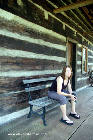 Lisa at one of the historic log cabins near the boyhood home of "Stonewall" Jackson in West Virginia.