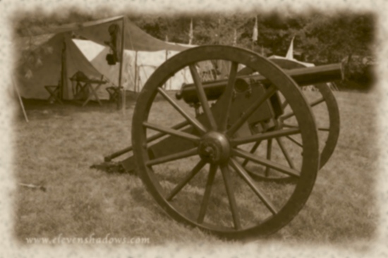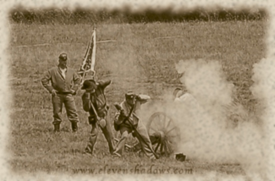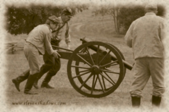 on a humid August Sunday.The Battle of Dry Creek begins as the Confederates wheel out the heavy artillery on a hot and humid Sunday in the Greenbrier State Forest. Although the actual battle took place over two days beginning August 26, 1863, the reenactment took only an hour. "They'll go until they run out of bullets," one of the reenactor's wives said.