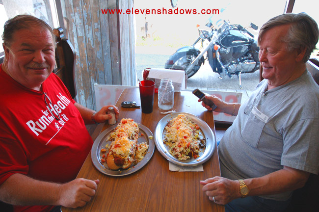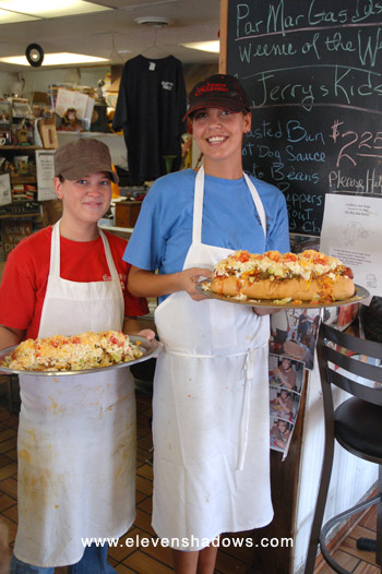 fries.Since our visit last year, Hillbilly Hot Dogs added the Single Wide - a 5-pound enormo-burger with all the fixin's - and a Double-Wide. You can guess how much the Double Wide weighs. |