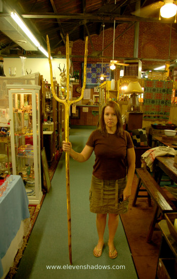 (a) A souvenir commemorating the Berkeley Springs Pitchfork Massacre of 1911. (b) A poor attempt at recreating the American Gothic painting with just one person. (c) A purchase that is sure to distract airline security from the liquids in my carry-on bag. |