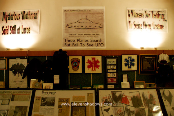 John Keel wrote the definitive book on the subject, The Mothman Prophecies, which was later made into a movie with Richard Gere. The museum has props from the film as well as newspaper and magazine clippings, videos and other information. Museum owner Jeff Walmsley launched an annual Mothman Festival in 2006, with attendance growing yearly. Along with Mothman costume contests, a powerlifting competition and a Miss Mothman beauty pageant, visitors can talk with a few of the original eyewitnesses and attend a panel discussion of authors, experts and paranormal investigators. This is co-curator Jeremy Pitchford, a very friendly and knowledgeable guy. |