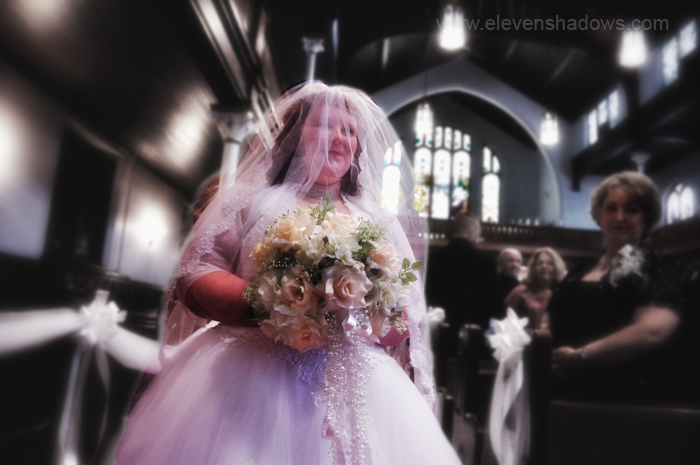 shot many formal shots and then put away the lights and tripod.At 3:30pm, the ceremony began. This is Carrie walking down the aisle. It was on. |