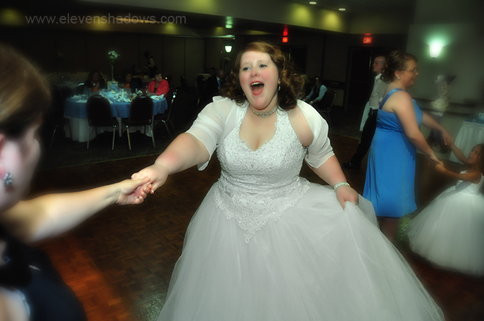 expression. You just can't fake joy like this.The reception hall was also quite dark, so I continued using the flash. I was to photograph the entire reception as well. I met up with Lisa's family and everyone else and managed to eat. I wasn't sure if I'd ever get around to it, so I had packed blueberry bars and trail mix bars if I didn't get any down time. |