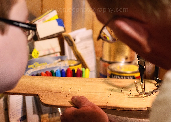 Liam is starting up Club Rhino. And to do that, well, it helps to have a rhino. Liam drew this free-hand and cut most of it out, doing this in the same master laboratory where Lisa's dad makes his famous Appalachian walking sticks and canes. |