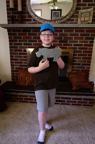 This is the finished rhino that Liam just created for Club Rhino. If you look closely, you can see that Liam is also sporting a Club Rhino cap, which he also drew himself. |