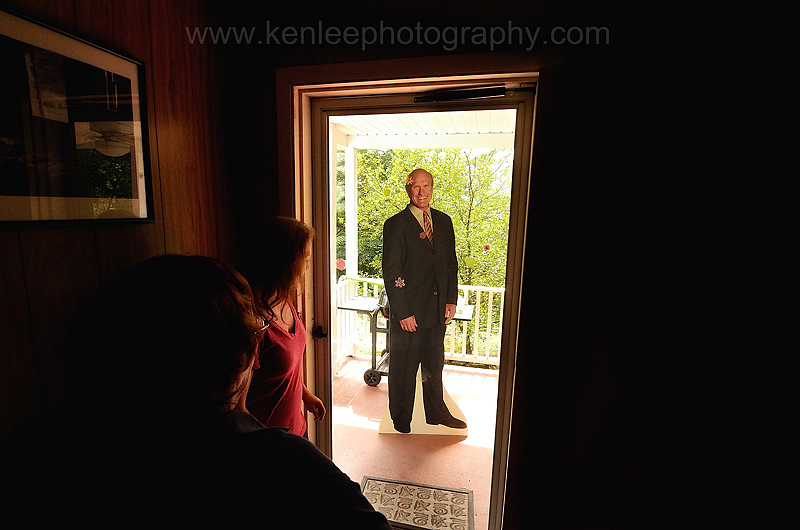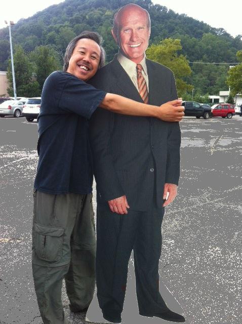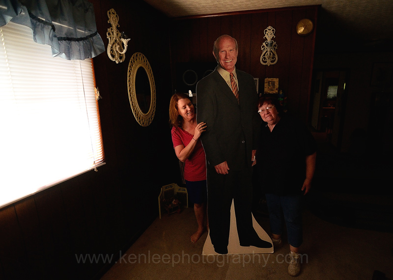 Aunt Sandy loves Terry Bradshaw. Absolutely adores him. So my first thought was, "This is clearly a sign that we should buy this for Aunt Sandy." And so we did, jamming him between the seats of our cars for the ride home. And when I went to pay for this, the guy said, "My wife is going to be so happy that he's gone from the window front." I replied, "So by doing this, we're helping your marriage?" Lisa walked up to Aunt Sandy's to distract her and make sure that she wouldn't glimpse me carrying Terry Bradshaw up her driveway. Ten minutes later, I knocked loudly on her front door and hid to watch the mayhem. Aunt Sandy freaked! This photo is basically what she saw when she flung open the door: Terry Bradshaw saying hello with his beaming smile. Yes, life is good. |