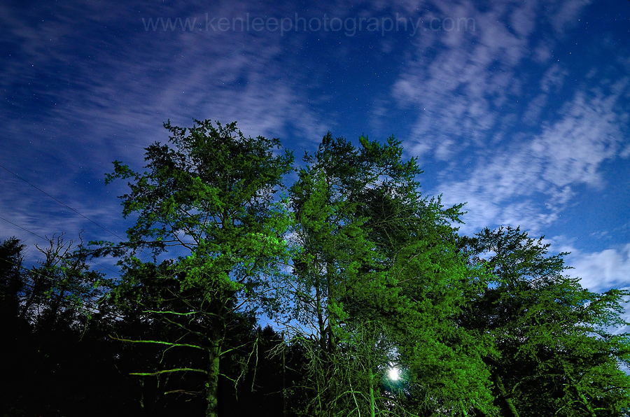 "Getting photographs is not the most important thing. For me it's the act of photographing. It's enlightening, therapeutic and satisfying, because the very process forces me to connect with the world. When you make four-hour exposures in the middle of the night, you inevitably slow down and begin to observe and appreciate more what's going on around you. In our fast-paced, modern world, it's a luxury to be able to watch the stars move across the sky." - Michael Kenna in "Photographer's Forum Interview"- Winter 2003 by Claire Sykes So when the skies were relatively clear - it had been cloudy and raining for much of the trip - I wrested myself away from watching the Summer Olympics to take a few shots of the West Virginia night sky. There was a lot of ambient light already, but I do enjoy the way the clouds look. This was taken at approximately 10:30 pm. Geek Stuff: |
