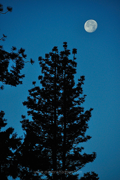28 June 2010:The next morning, we were rewarded with a full moon, this just outside the tent cabin. When camping anywhere in Sequoia National Forest, the beautiful sites are right in front of you. |