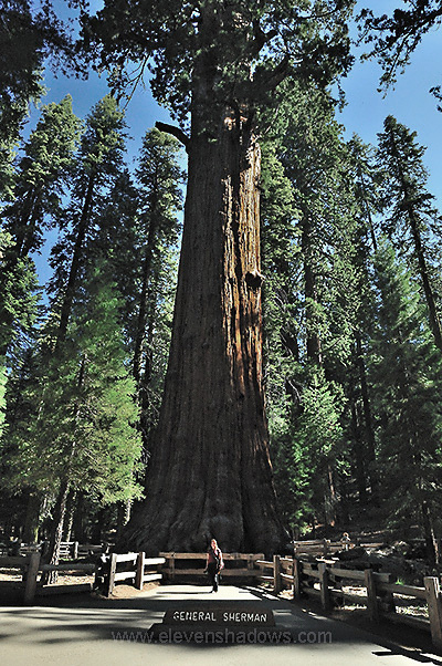 humans, this deer roaming past the ginormous General Sherman Tree, the largest living