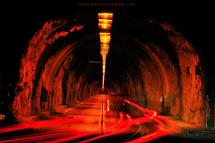 capture the tunnel and some of the taillights of the traffic rolling through